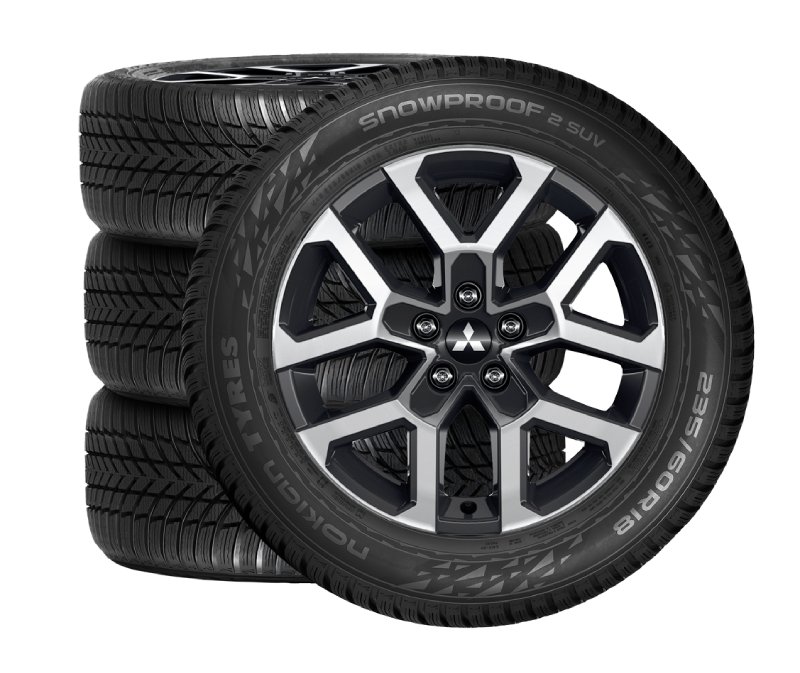 Zimné komplety sú zostavené z oceľových alebo zliatinových diskov a kvalitných zimných pneumatík. Bezpečnostné matice kolies alebo skrutky nie sú súčasťou kompletov. Ak nie je možné použiť pôvodné, je potrebné objednať matice alebo skrutky samostatne. Informujte sa u svojho predajcu Mitsubishi o podrobnostiach ponuky pre vaše vozidlo. Uvedené ceny sú vždy za sadu 4 ks zimných kompletov kolies.